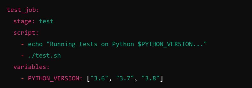 - Matriks Pekerjaan: GitLab memungkinkan Anda untuk menjalankan pekerjaan dalam konfigurasi yang berbeda menggunakan matriks pekerjaan. Misalnya, Anda dapat menguji aplikasi pada beberapa versi Python.